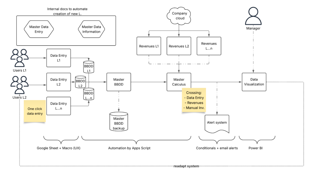 All data is automatically consolidated, cleaned, and visualized to allow managers to monitor operations in real time and make data-driven decisions without relying on manual spreadsheets.